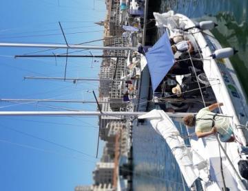 La météo était au rendez- vous et nous avons profité d'une belle matinée ensoleillée de navigation ; les résidents ont barré chacun leur tour pour leur plus grand plaisir.
