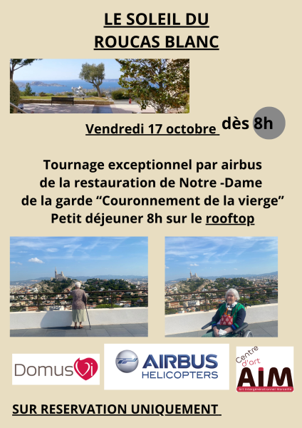 A l'occasion de la restauration emblématique de Notre Dame de la Garde , un tournage exceptionnel réalisé par AIRBUS se déroulera sur le toit terrasse du Soleil du Roucas Blanc , offrant une vue panoramique sur la "Bonne Mère" et la ville de Marseille.